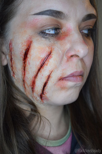 They can be used on skin, silicone and latex without any difference in the application or overall look of the makeup. As mentioned in the description, these paints are actually waterproof and remain in place for hours without moving. You don’t even need to set them with powder. Sheer washes of paint are easily removed with soap and a good cloth but I found that opaque colours are best removed with alcohol. There was no staining to the skin from any of the shades either which I find impressive especially the blood palette.
