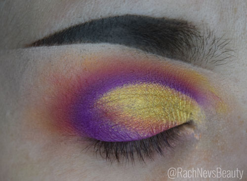 The best thing about this palette…well two things actually. Number one, there was barely any fallout under the eye, like minimal, and 2 the shimmers lasted for hours before they started creasing. I’m talking like 4 hours minimum before they started to crease which is a fricking miracle on me. There was a small amount of staining from the pink and deeper purple but none from the red, blue or purple shimmers. There was also a small amount of kickback in the pan but that’s to be expected.