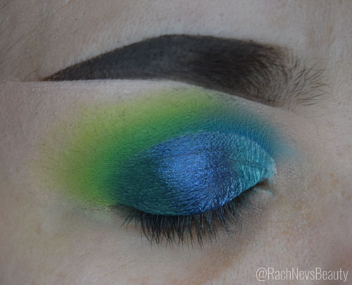 On the eye, the shadows are fricking amazing. I think I’ve tried a good portion of the shades in there and I have to admit, I’ve not really had any problems with any of them. Each one is highly pigmented and yet remain sooooo easy to blend. They keep their colour fairly well during blending but they can be built up without any patchiness if needed. The shimmers are gorgeous, full of reflective particles, soft and smooth and also easy to blend.