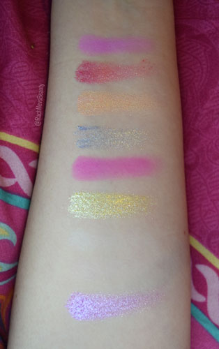 This is a 9 pan palette featuring 4 mattes and 5 shimmers representing the times. There’s a pop of colour along with some pastels and a fair few shimmers. I have to admit that I’m not overly inspired by the colour palette and it isn’t very cohesive as a whole. Thankfully the palette is cruelty free and vegan.