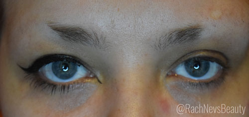 On the eye, both products perform pretty well. Lets start with the mascara. It actually does what it promises in the description. The formula delivers both volume and length as well as the ultra black finish. It applies easily with the brush and although it’s kind of thick, it doesn’t go clumpy with multiple layers. With the thickness, comes some slight heaviness so it’s not super lightweight but it’s also not too noticeable. It also stays where you put it, unless you rub your eye it doesn’t really transfer and is a bit tough to remove.