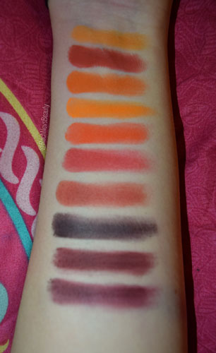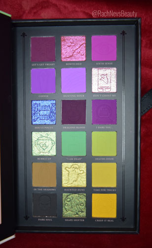 According to the description, this is a spooky inspired palette full of greens, purples and oranges. Despite containing what seem to be non cohesive colours, there are enough tones to provide a range of blending options for them. I really love the colour story but I wish there were some spookier shades in there.